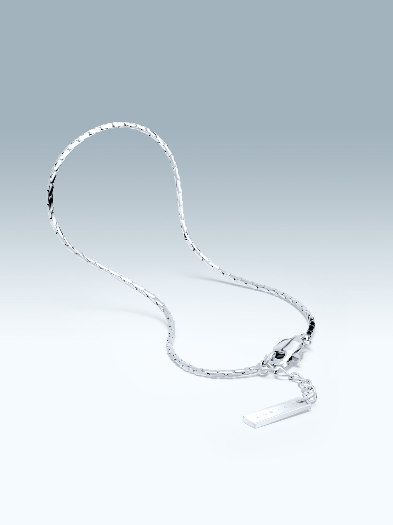Stainless steel (316L). Surgical grade steel. Much more durable than silver, gold, or platinum. It will not rust, corrode, tarnish, stain, fade, or turn your skin green.
