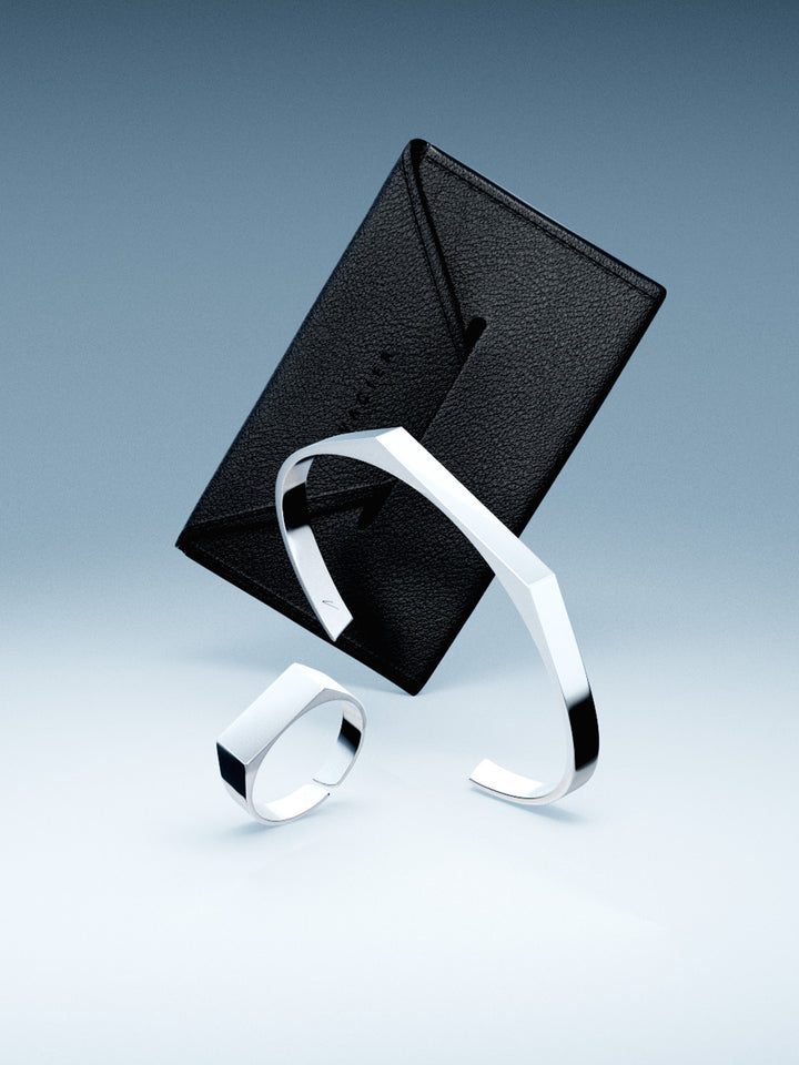 Featuring the Unisize Signet Ring, the Unisize Signet Cuff, and the Minimal Vacier Wallet